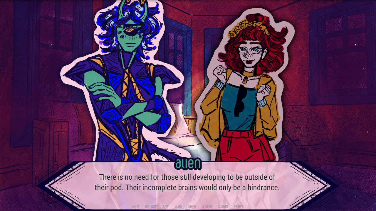 If you’ve been following Tea for Two on Tumblr or Bluesky, you know that we’ve been continuing development on Alien Incrementum throughout the summer and fall! Slow but steady progress has been made, and we’re very pleased to inform you that Margot’s route is complete and in-game!