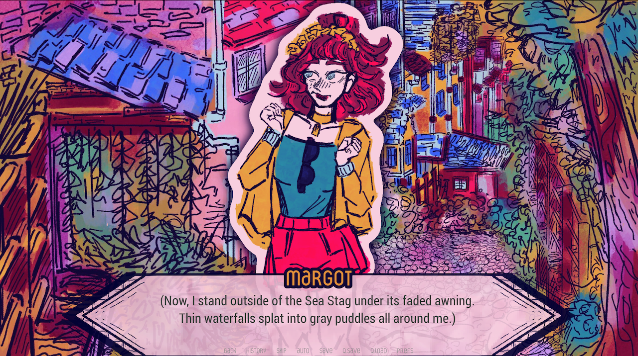 While Adrianne might speak her inner thoughts in a more narrator-like way, that style of thinking didn’t suit our Margot! We wrote her inner monologue with a more personal twist, describing less of what she sees and more so what she feels! However, some lines still read as far too expository, so we’ve been combing through Margot’s thoughts for any lines that feel out of place!